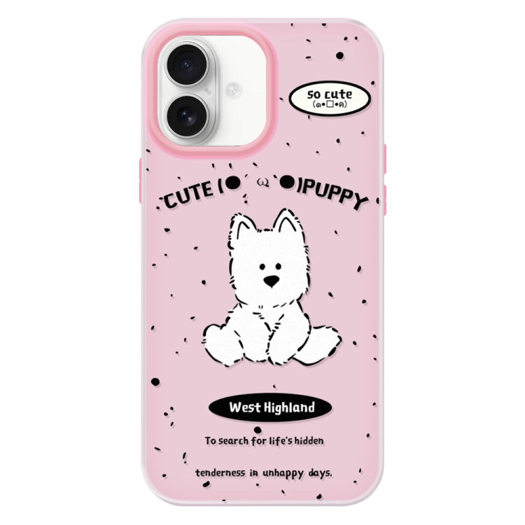 Funda híbrida TPU y Policarbonato para iPhone 16 Plus (Línea Rosa Perro)