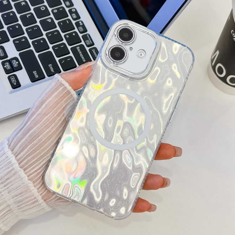 Funda TPU Enchapada Magsafe para iPhone 16 Plus con Película de Lente Brillante (Arrugas Blancas)