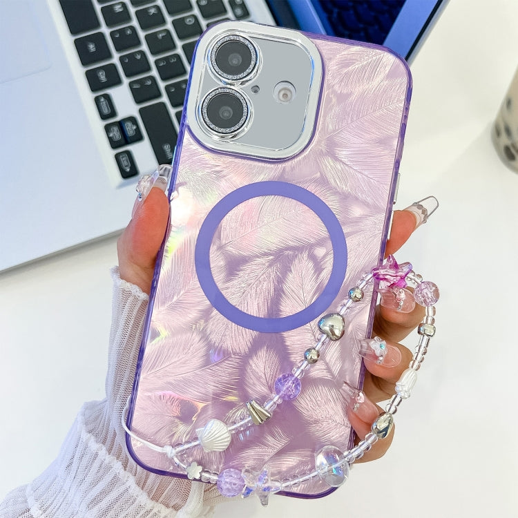 Funda para Teléfono TPU Magsafe iPhone 16 Plus Textura Enchapada Película Lente (Plumas Moradas)