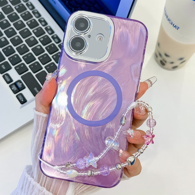 Estuche para Teléfono Magsafe iPhone 16 Plus Protección Purpurina Degradado Diamantes (Morado)