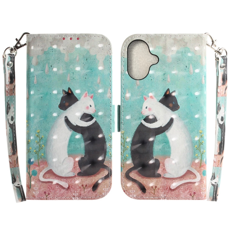 Pour iPhone 16 Étui de téléphone en cuir à rabat horizontal couleur 3D (chat noir et blanc)