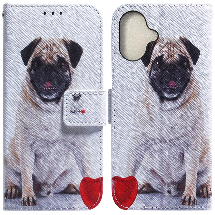 Pour iPhone 16/16 Plus Étui en cuir à rabat pour téléphone à dessin coloré (loup et chien)