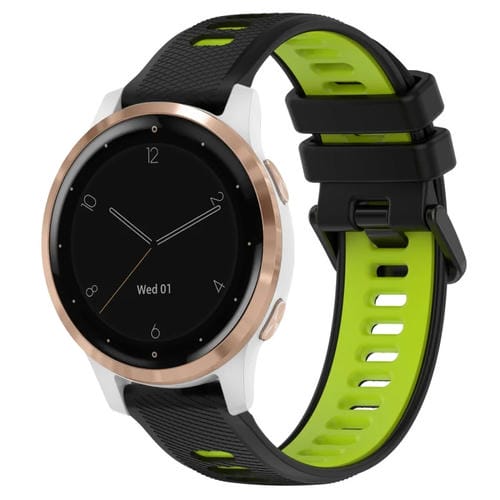 Pour bracelet de montre de sport en silicone bicolore Garmin Active 5 20 mm (vert clair + noir)