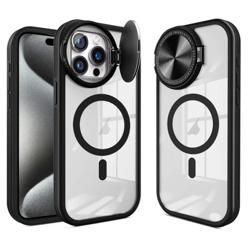 Funda para teléfono iPhone 15 Pro Max Round Camshield Magsafe TPU Hybrid (Negro)
