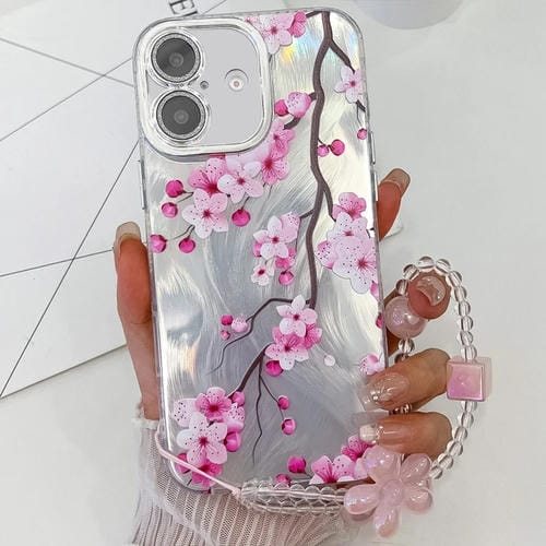 Funda de Teléfono TPU iPhone 16 Textura Flores Plantas Galvanizadas (Flor de Ciruelo Fl6)