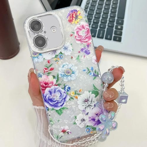 Funda TPU para Teléfono iPhone 16 Textura Flores Plantas Galvanizadas (Peonía Colorida)