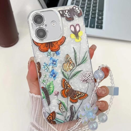 Funda de Teléfono TPU con Textura de Flores y Plantas Galvanizadas para iPhone 16 (Mariposa)