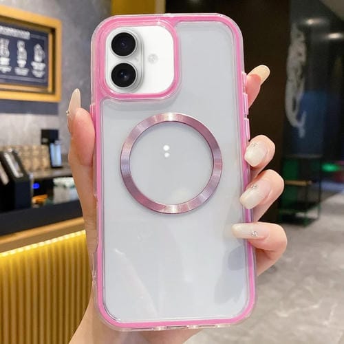 Funda para iPhone 16 3 en 1 con Textura de Cd y Airbag Magsafe (Rosa y Rojo)