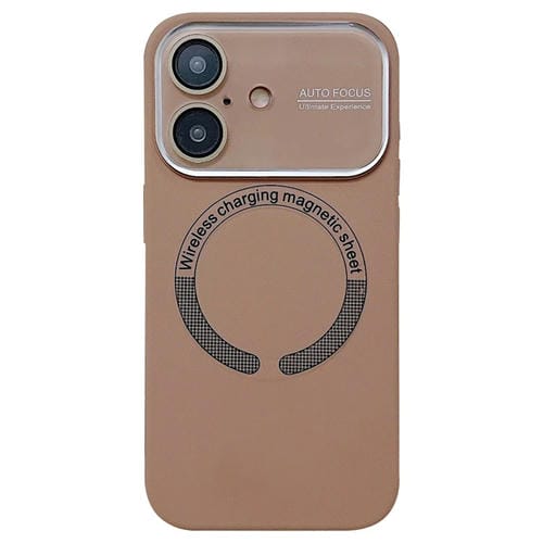 Funda de Silicona Magsafe para iPhone 16 con Lente de Vidrio Acrílico y Ventana Grande (Café)