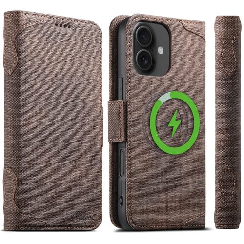 Funda de Cuero para Teléfono Suteni J07 Multifunción Horizontal Magsafe para iPhone 16 (Marrón)