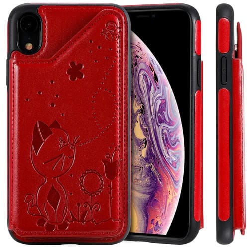 Estuche Protector iPhone Xr Estampado Abeja y Gato Ranuras Tarjetas Marco Fotos (Rojo)