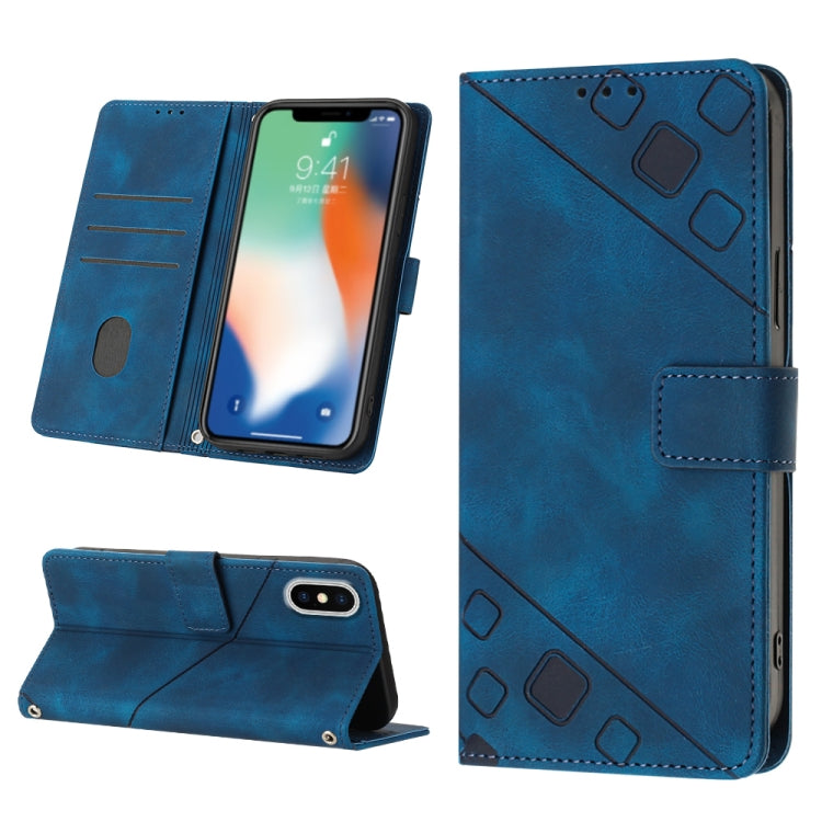 Estuche para Teléfono iPhone X Xs Cuero En Relieve Tacto de Piel (Azul)