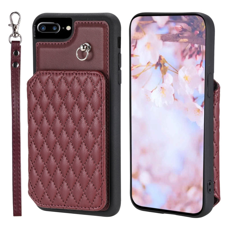 Funda para Teléfono iPhone 8 Plus/7 Plus con Bolsa para Tarjetas Textura de Rejilla y Cordón (Rojo)