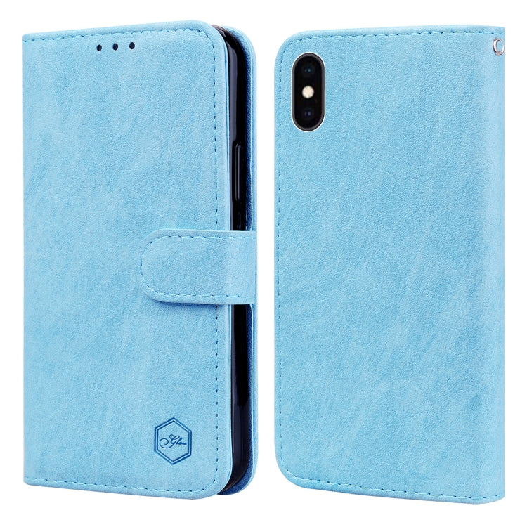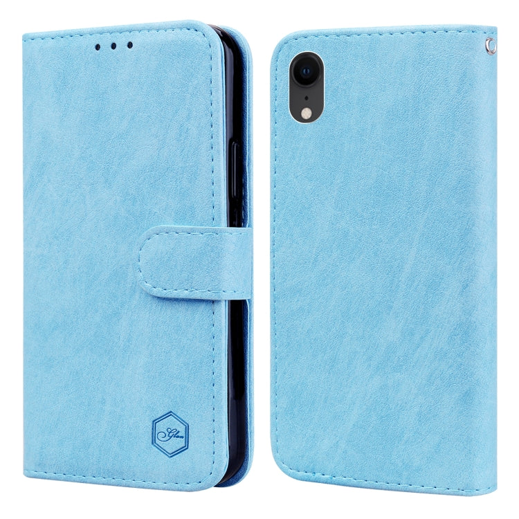 Funda para Teléfono iPhone Xr Skin Feeling Oil Leather Texture PU + TPU (Azul Claro)