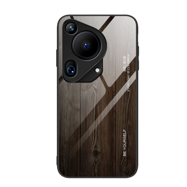 Caja para Huawei Pura 70 Ultra de Vidrio con Grano de Madera (Negro)