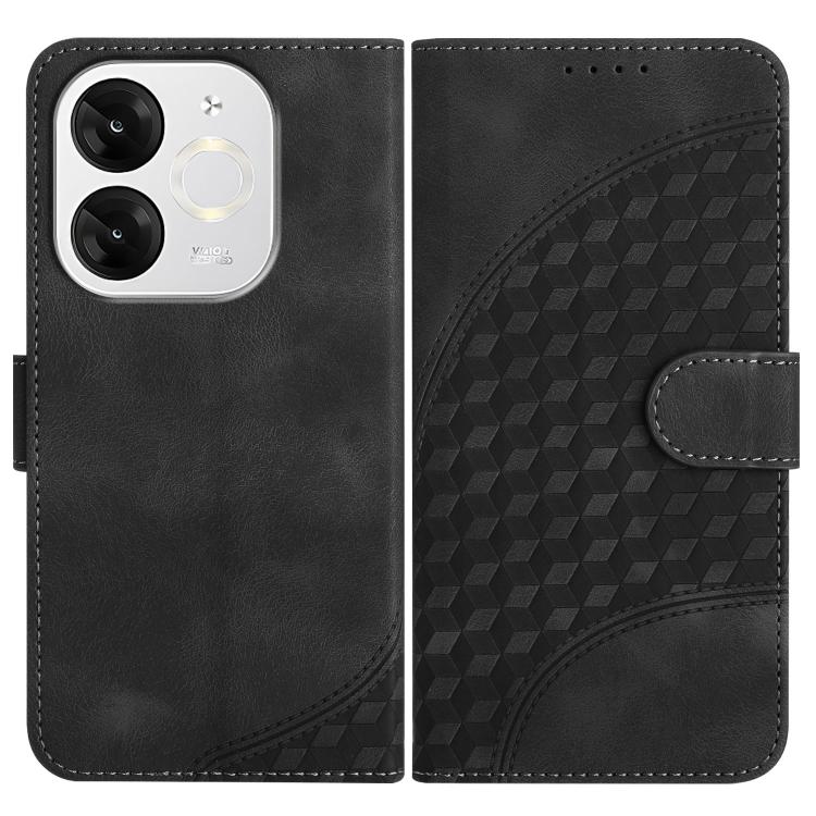 Funda de Cuero para Teléfono Itel A48 con Diseño en Relieve Mariposa y Cuadrícula con Cordón (Negro)