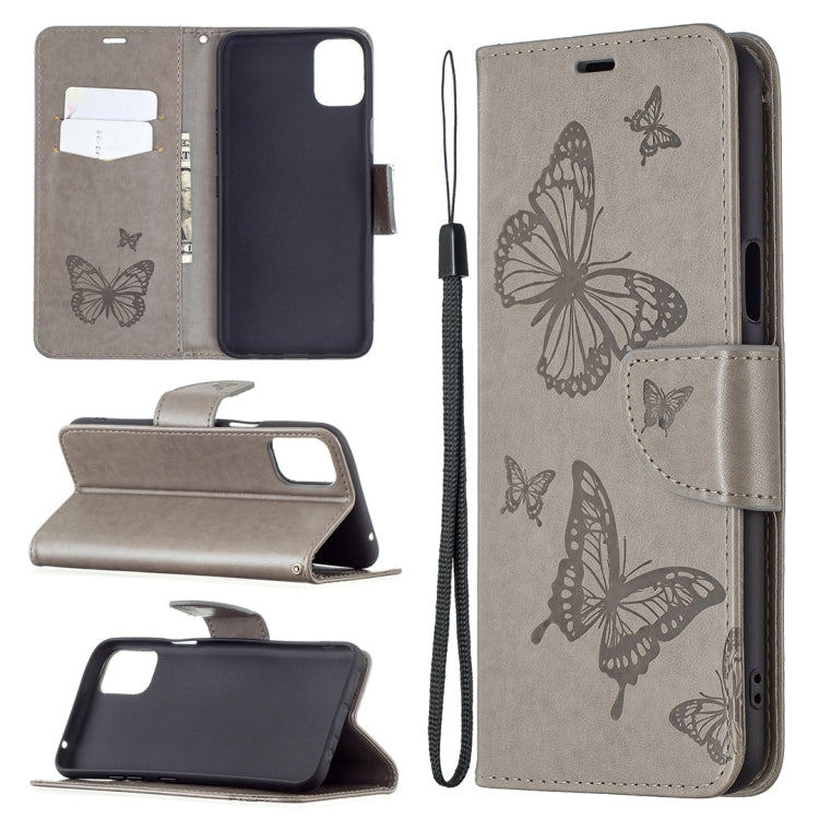 Funda de Cuero Flip para LG K42 con Estampado Dos Mariposas, Soporte, Ranura y Cordón (Oro Rosa)