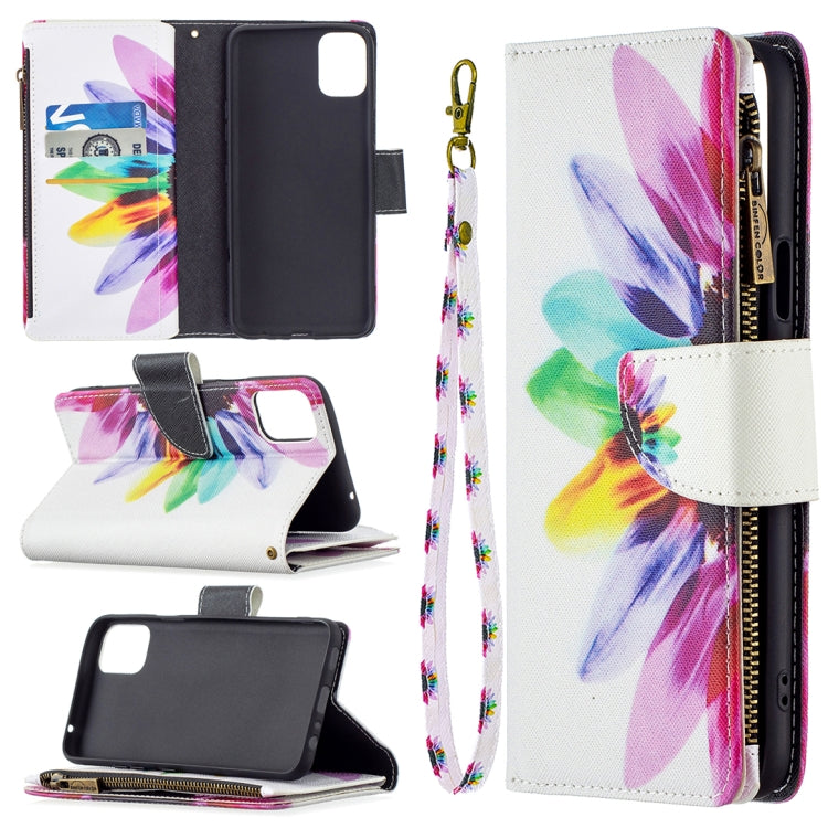 Funda de Cuero para LG K42 con Cremallera Horizontal, Soporte y Ranuras para Tarjeta (Flor de Sol)