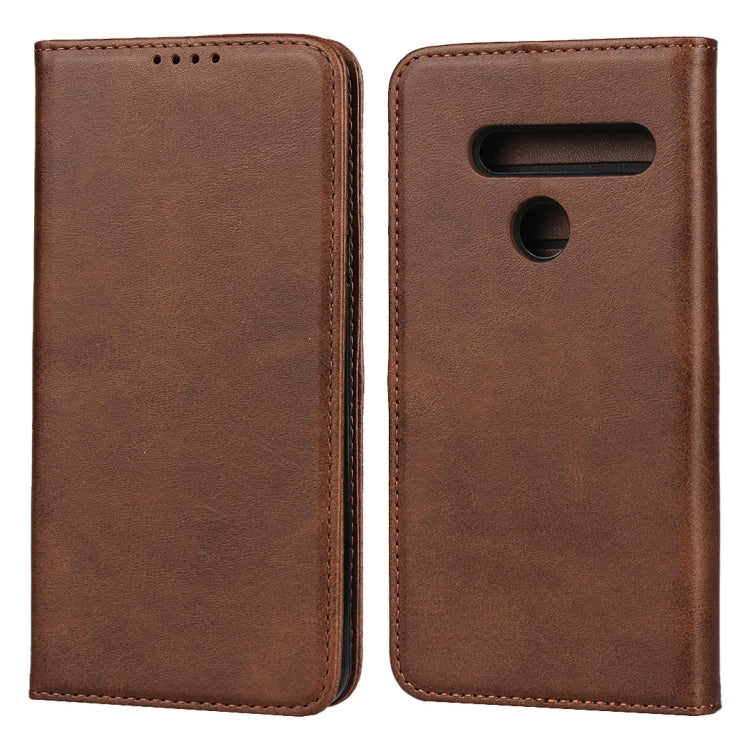 Funda de Cuero Magnética para LG V60 ThinQ 5G con Soporte y Ranuras para Tarjetas (Marrón)