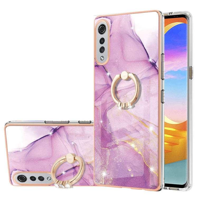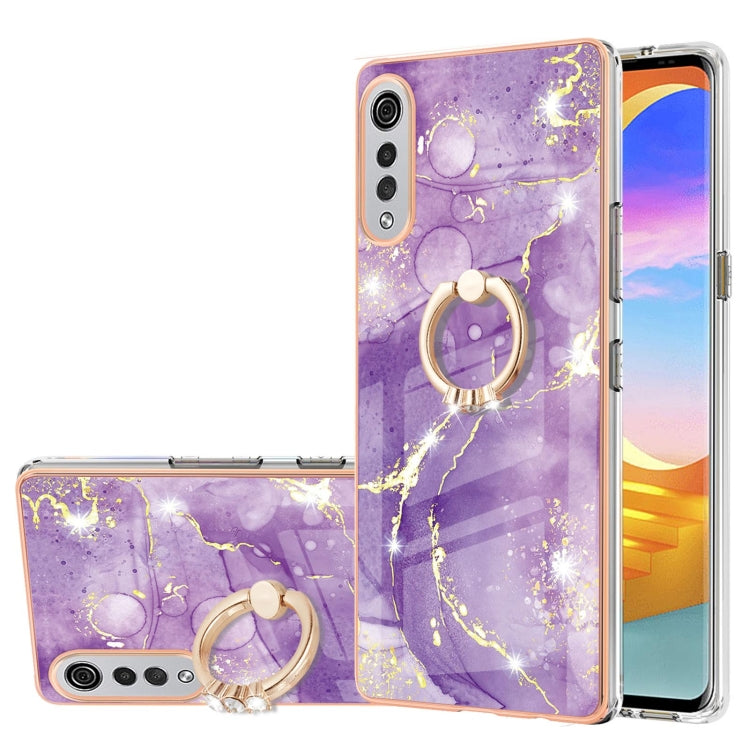 Funda TPU LG Velvet 4G & 5G G9 Velvet Patrón Mármol Electrochaplating con Soporte de Anillo (Púrpura)