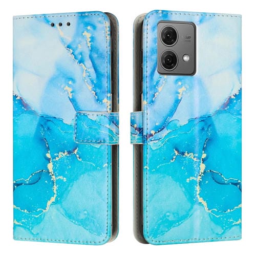 Funda de Cuero con Patrón Mármol para Motorola Moto S50 5G y Edge 50 Neo (Azul Verde)