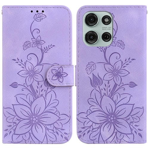 Funda de Cuero con Relieve de Lirio para Motorola Moto G75 5G (Morado)