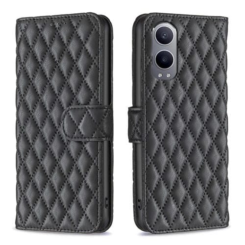 Funda de Cuero con Tapa para OnePlus Nord Ce4 Lite Global Diamond Lattice (Negro)