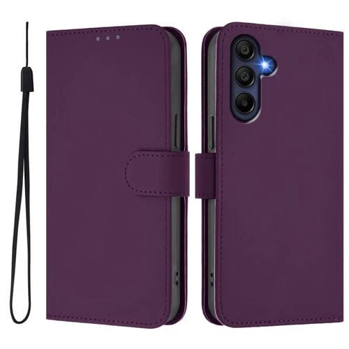 Funda de piel con textura de color liso y cordón para Samsung Galaxy A17 5G (violeta)