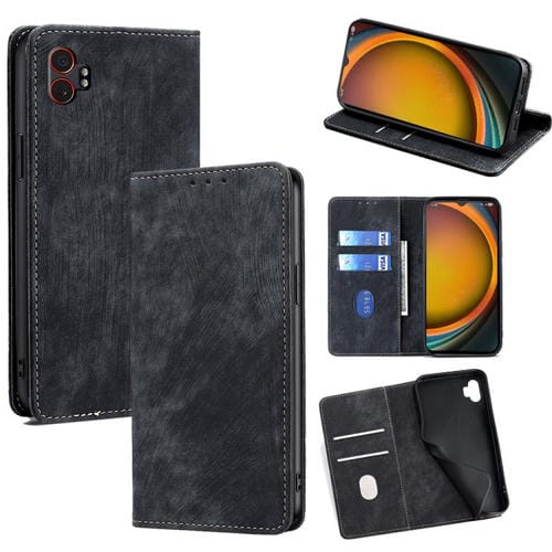 Funda de cuero magnética con cepillo y antirrobo RFID para Samsung Galaxy Xcover 7 Pro 5G (negra)