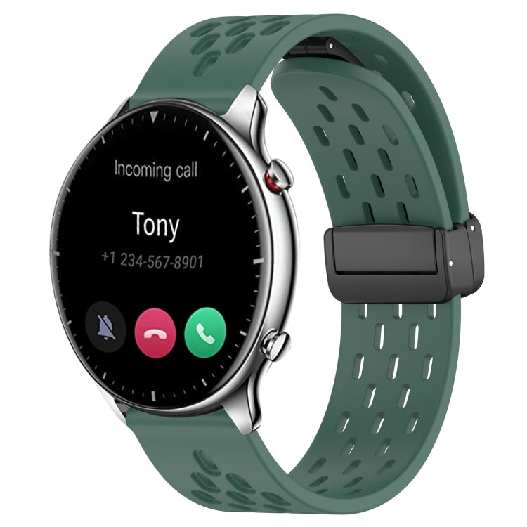 Correa de Silicona para Amazfit GTS 2E con Cierre Magnético Plegable 20mm (Verde Oscuro)