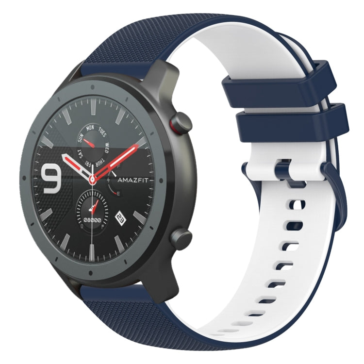 Correa de Reloj Silicona para Amazfit GTR 47mm 22mm Dos Colores a Cuadros (Azul Oscuro + Blanco)