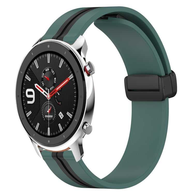 Correa de Reloj para Amazfit 3 22mm Silicona con Cierre Magnético Plegable (Verde Oliva + Negro)
