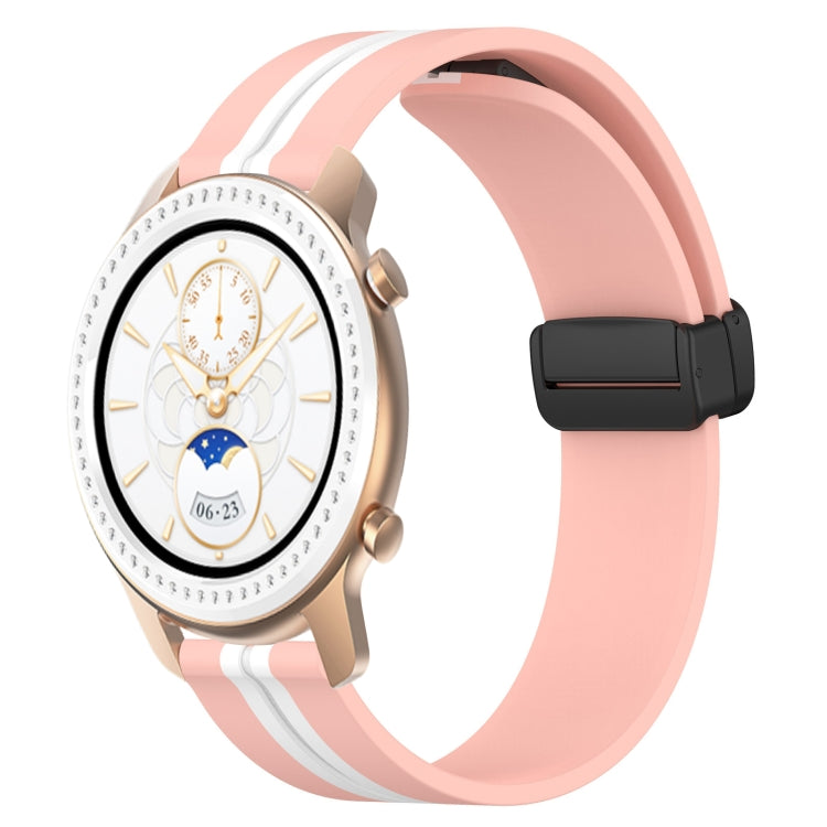 Correa de Reloj Amazfit GTR 42mm 20mm silicona con cierre magnético plegable (Rosa + Blanco)