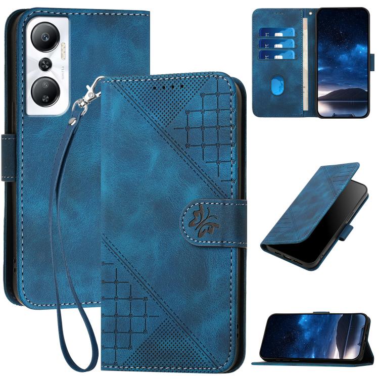 Funda de Cuero para Infinix Hot 20 4G con Diseño Mariposa en Relieve y Cordón (Azul Oscuro)