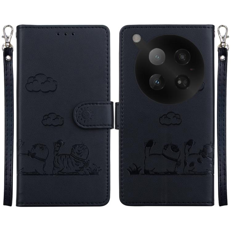 Funda de cuero RFID con diseño de gatos para Infinix Note 50 Pro+ (negra)