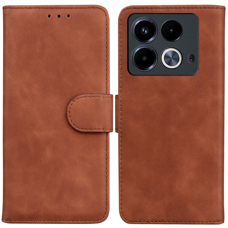 Funda de Cuero con Tapa para Infinix Note 40 4G Skin Feel Pure Color (Marrón)
