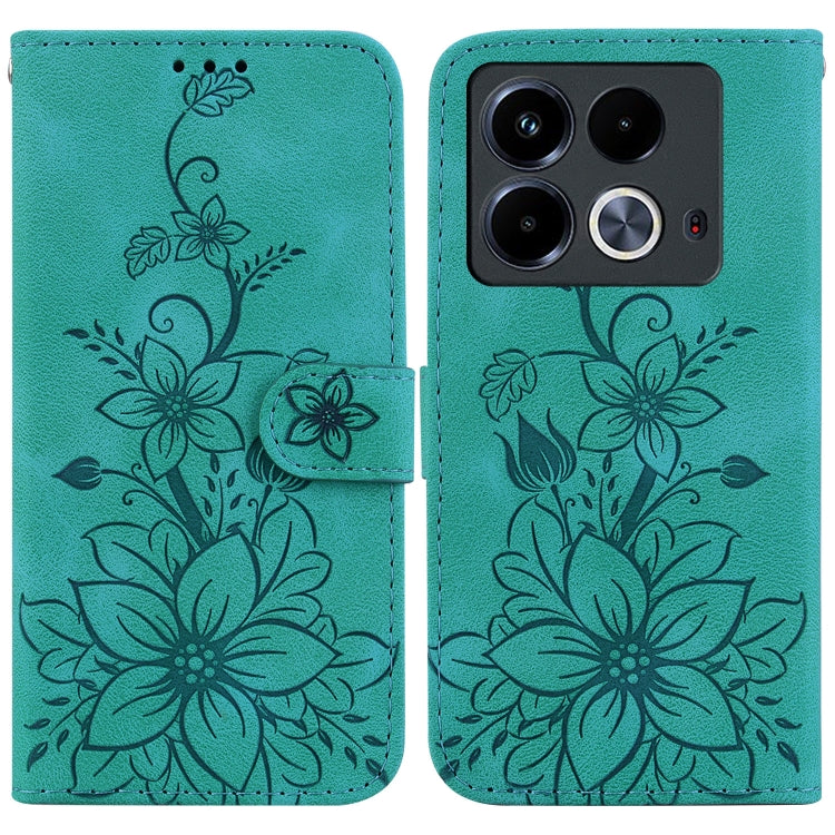 Funda para teléfono Infinix Note 40 4G Lily de cuero en relieve (Verde)