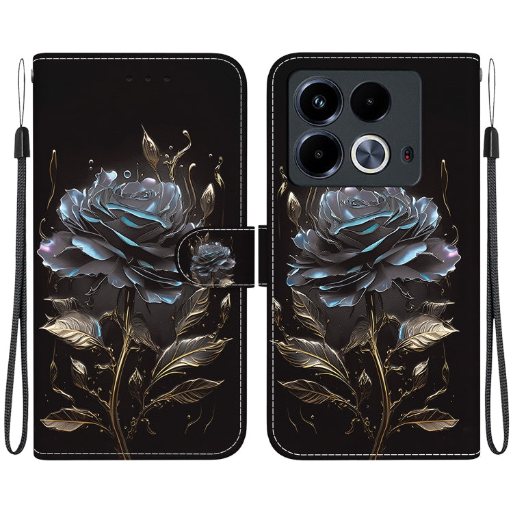 Funda de Cuero para Infinix Note 40 4G con Dibujo Coloreado y Textura de Cristal (Rosa Negra)
