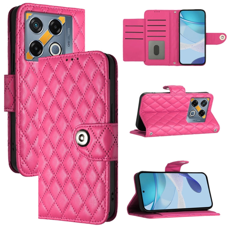 Funda de Cuero para Infinix Note 40 4G con Tapa, Textura Romboidal y Cordón (Rosa)