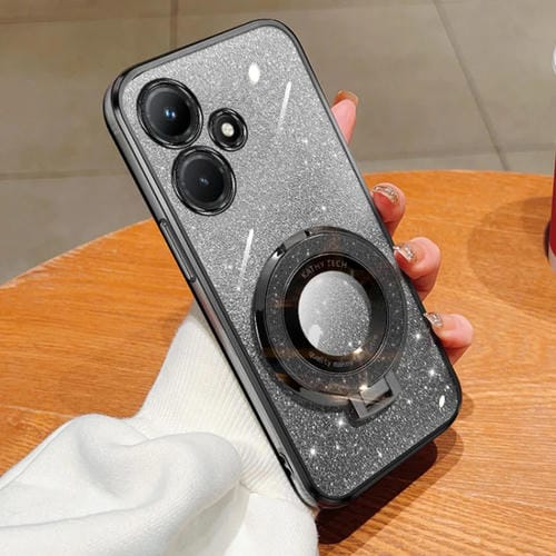 Funda TPU con Soporte Redondo y Purpurina Degradada para Infinix Hot 30I (Negro)