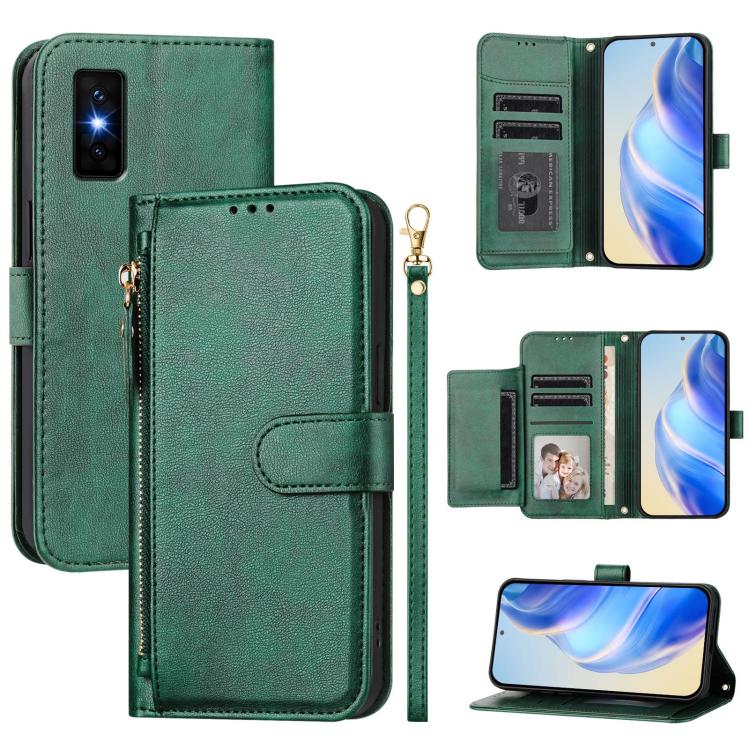 Funda de cuero con cremallera y ranuras para múltiples tarjetas para Infinix GT 30 Pro (verde)