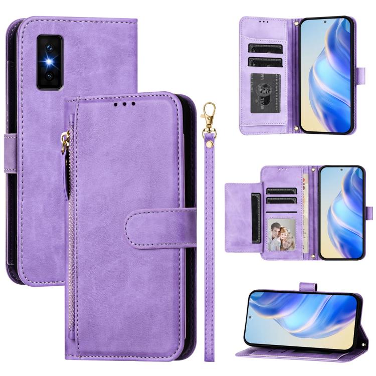 Funda de cuero con cremallera y ranuras para múltiples tarjetas para Infinix GT 30 Pro (morado)