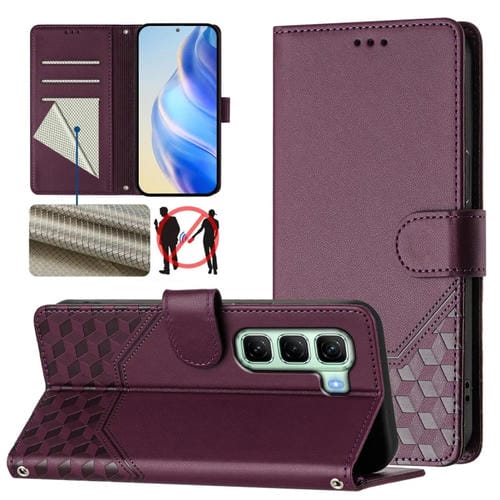 Funda de Cuero Rfid con Relieve en Panal para Infinix Hot 50 4G (Violeta)