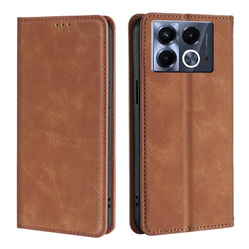 Funda de Cuero Magnética con Tacto de Piel para Infinix Note 40 5G (Marrón Oscuro)