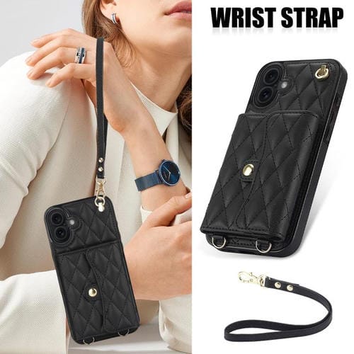 Funda para iPhone 17 con ranura para tarjeta RFID y cordón largo (negra)