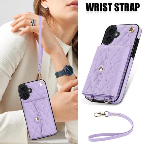 Funda de piel sintética con doble hebilla y diseño rómbico para iPhone 17 (morado)