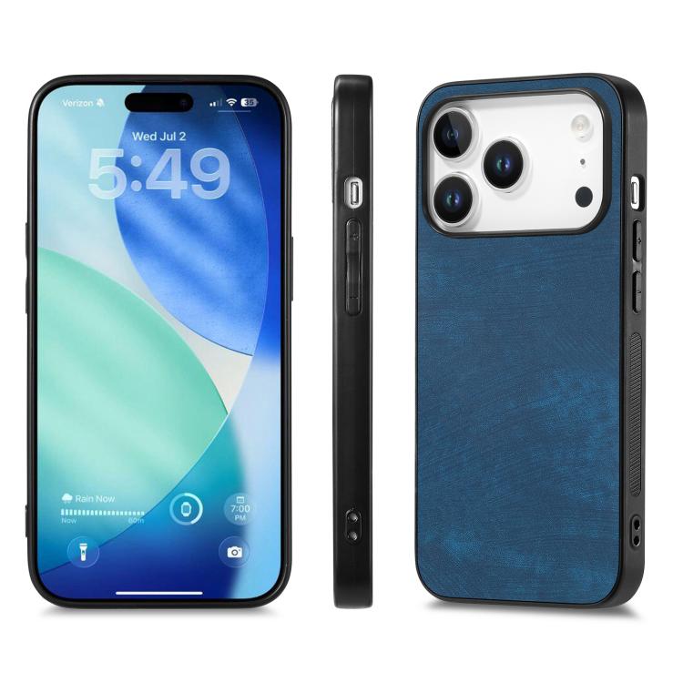 Funda trasera de PC de cuero vintage para iPhone 17 Pro Max (azul)