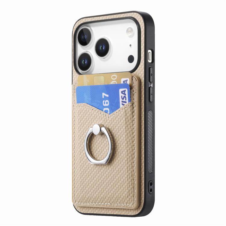 Funda de fibra de carbono con anillo para tarjeta para iPhone 17 Pro Max (caqui)