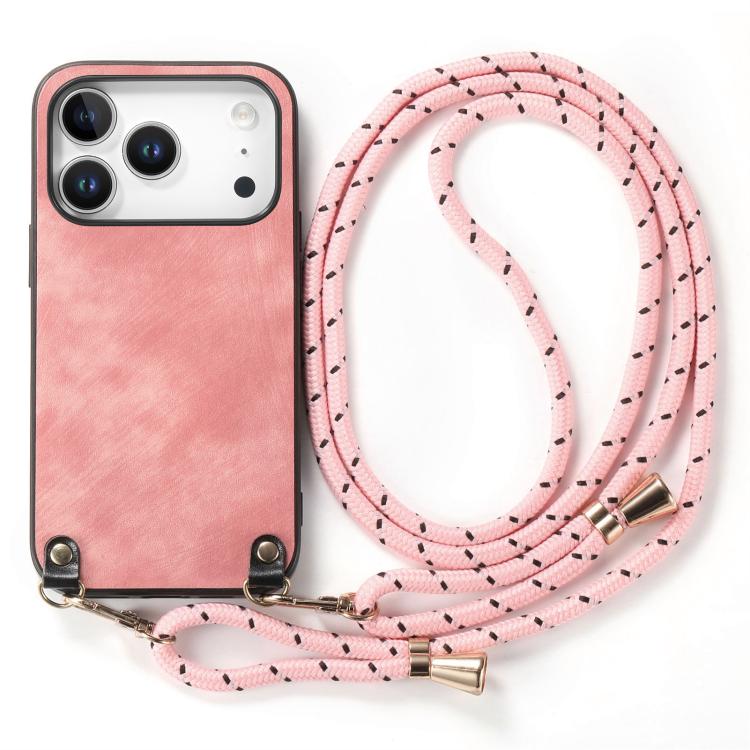 Funda de cuero vintage para iPhone 17 Pro Max con correa cruzada (rosa)