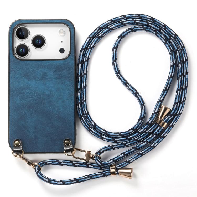 Funda de cuero vintage para iPhone 17 Pro Max con correa cruzada (azul)